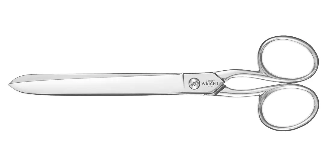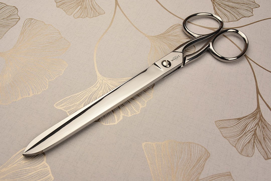 The blades are long and straight, and they produce long, straight cuts to match. This is particularly important in paperhanging, where sections of wallpaper must be cut to perfectly fit the wall, and patterns on the wallpaper need to be matched accurately between sections of wallpaper. The blades of these scissors will lie flush on the surface of a trestle table – an essential attribute for paperhanging.